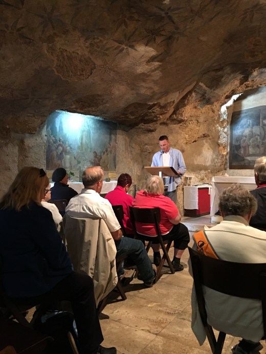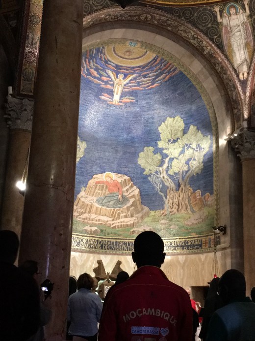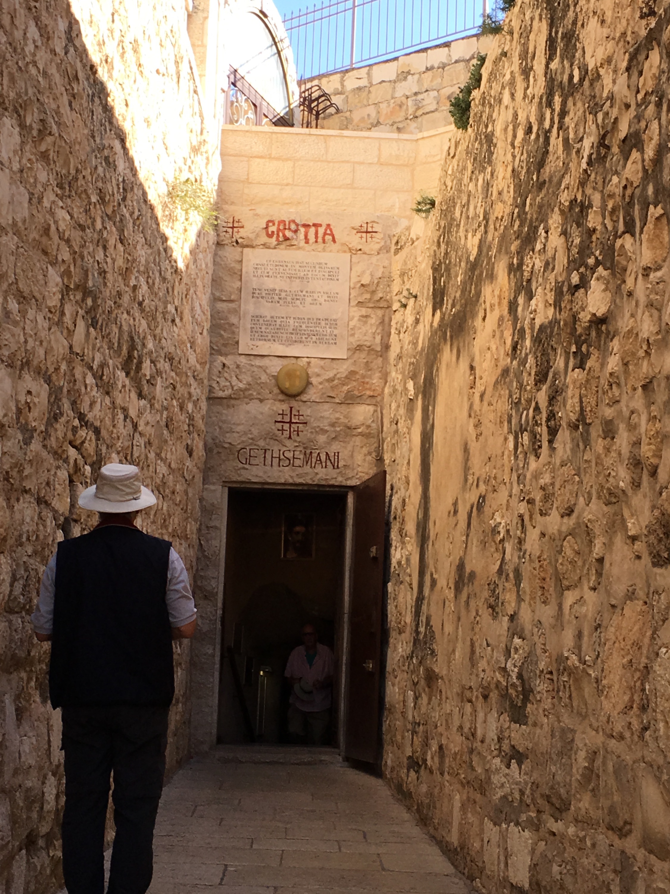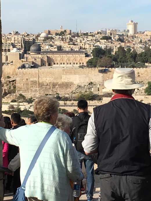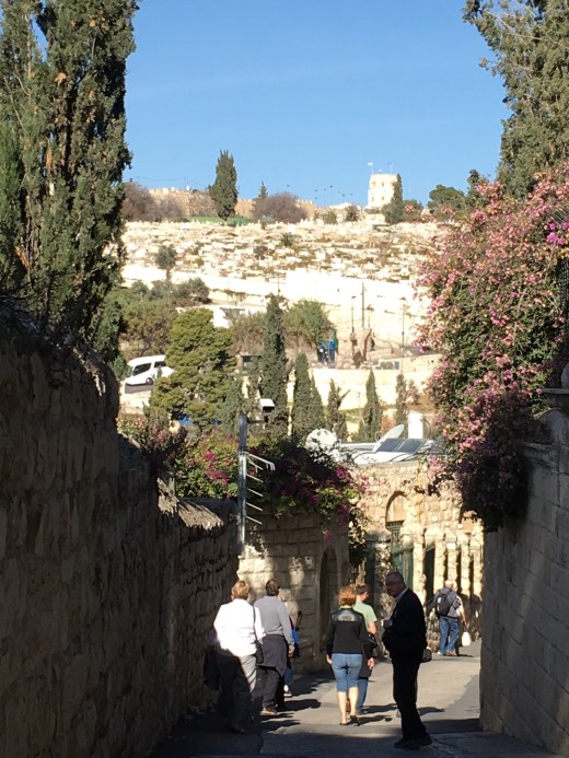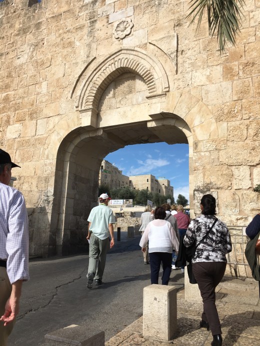 Then the blessed ‘Charioteers’ kicked in as we headed back through the cobblestone stepped paths of Old Jerusalem. Again, I can not thank my fellow pilgrims enough for stepping up to ‘carry the chariot’. It was another day of unbelievable amounts of steps through winding beautiful century old cobblestone paths-but certainly not ADA approved-:)!! They managed the bags (Thank you Kris, Molly and Ruth!) and offered prayerful ‘charioteer’ support from every corner. Their prayers were overwhelming to this humbled soul. Please meet the ‘Charioteers’…our fellow Pilgrims on a mission to make sure that yours truly could experience everything possible!! They even propped me up and held on to me for the picture on the steps to the Agony in the Garden at the Holy Sepulcher Church. I pray you can hear me applauding their unbelievable efforts!! Here are the selfless ‘Charioteers’!!