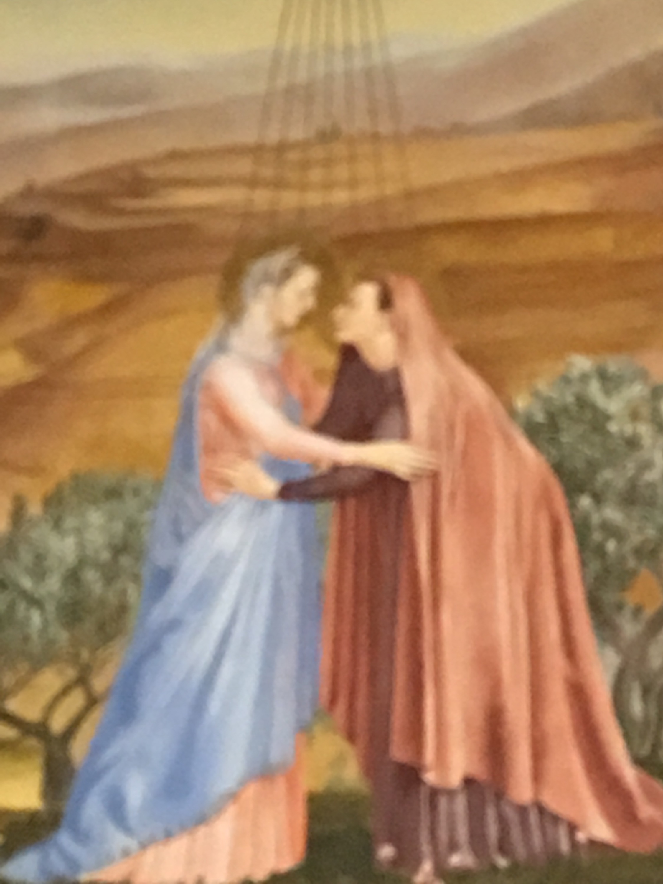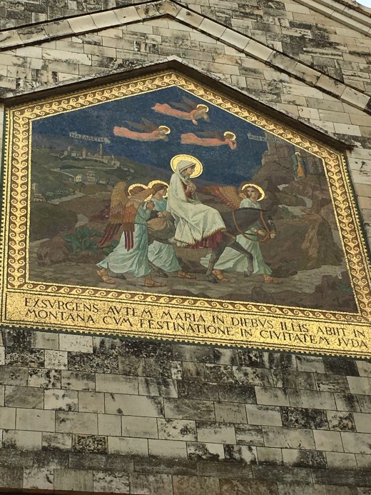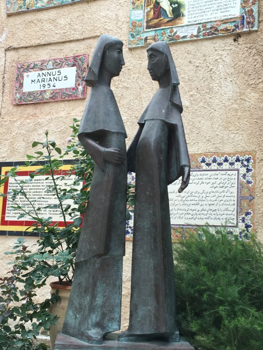 Within the Basilica of the Holy Sepulchre there are many religions with their own personal prayer space area. This is the open area, adjacent to Jesus’s tomb, which hosts the Roman Catholic services. The picture is of St. Mary Magdeline approaching Christ during the Way of the Cross.